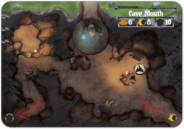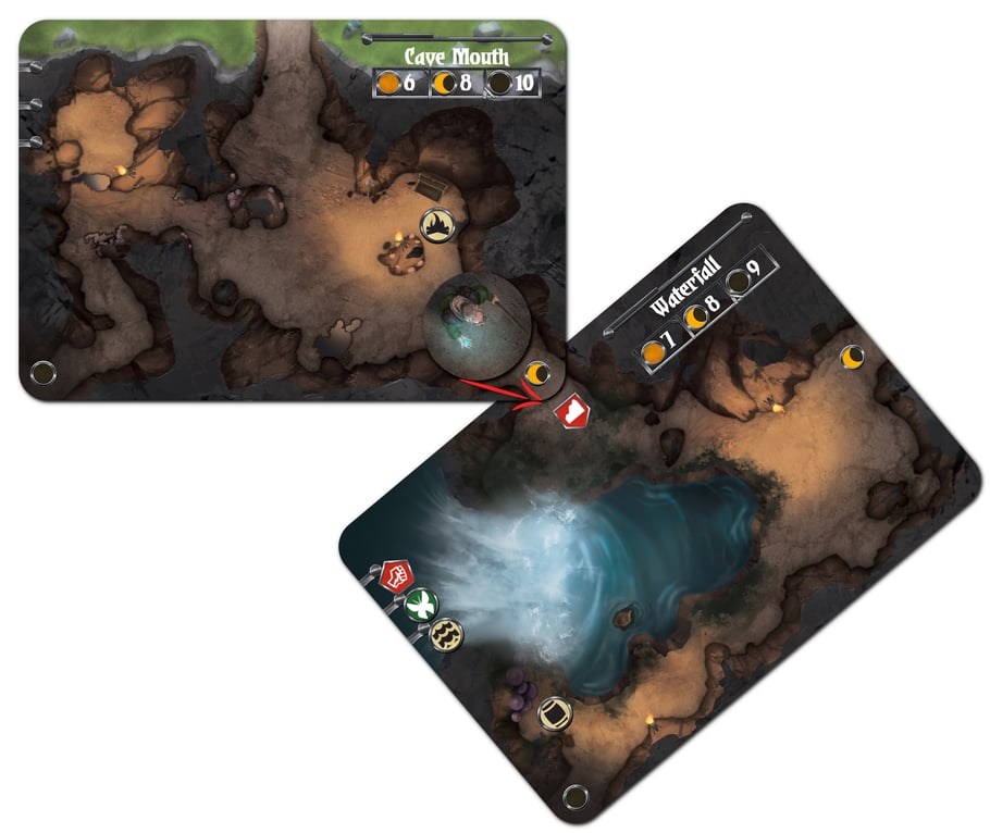 We will continue to slide the new card directly under the old one covering the footsteps and making the cave walls join up. You have just built a map! We call this dynamic mapping. You can see that you have created an ambient corridor.